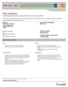 The individual indicated below may exercise their privileges to fly a drone subject to the rules and regulations set out under the Canadian Aviation Regulations (CAR).