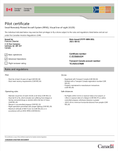 The individual indicated below may exercise their privileges to fly a drone subject to the rules and regulations set out under the Canadian Aviation Regulations (CAR).